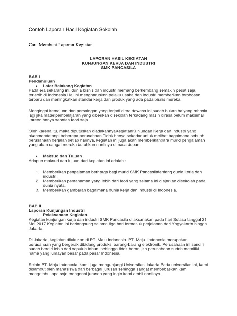 Contoh Laporan Hasil Kegiatan Sekolah Pdf